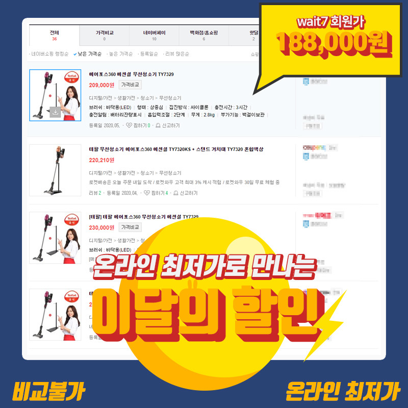 테팔 무선청소기 에어포스360 에센셜 골드(TY7320)